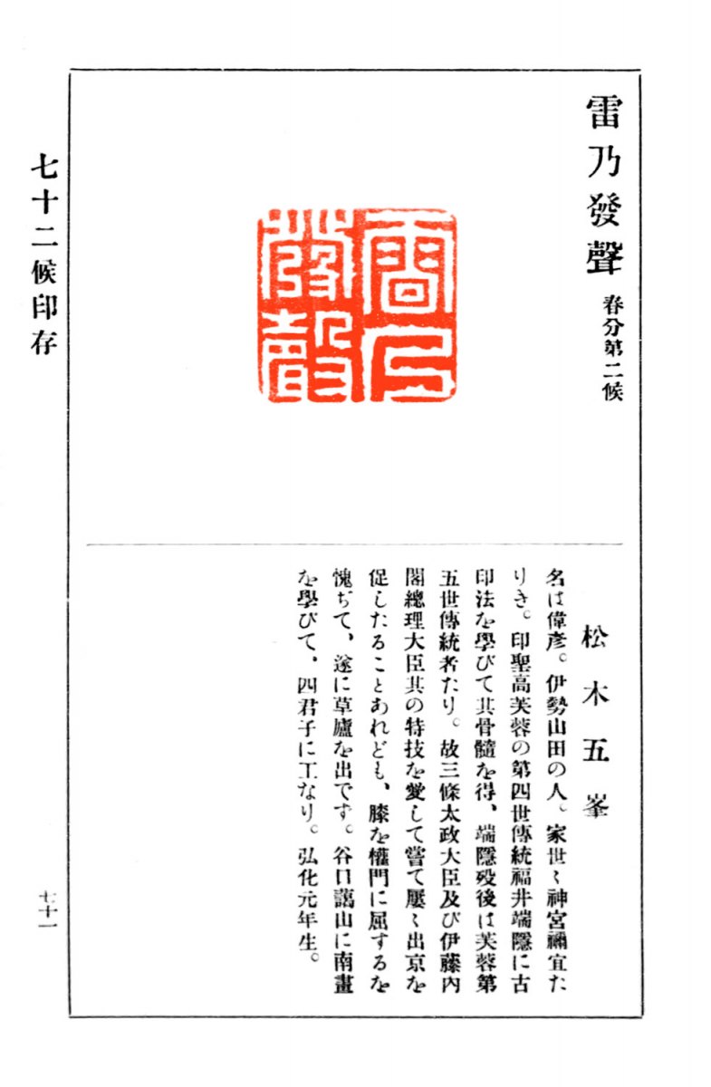 七十二候印存 春分第十一候 雷乃發聲(遠くで雷の音がし始める)/松木五峯(まつき)幕末ー大正期の画家、篆刻家。