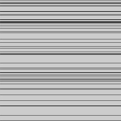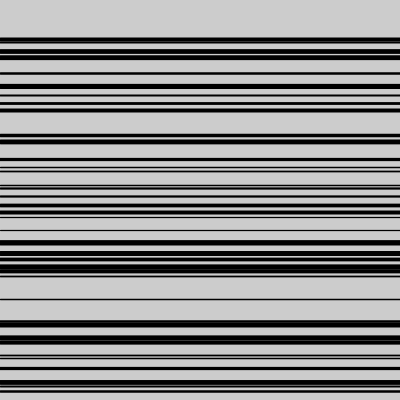 //=========================================== // 水平線をランダムに02 //=========================================== // CreationDate: 2025年2月24日 月曜日10:07:35 //=================【環境設定】================ size(400, 400); //画面サイズ //==================メイン==================== for (int i=0; i<50; i++) { float ry =random(0, height);//ランダムなY座標を生成 strokeWeight(random(1,5)); line(0, ry, width, ry); //直線を描画 } |