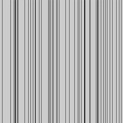 //=========================================== // 垂直線をランダムに //=========================================== // CreationDate: 2025年2月24日 月曜日10:16:08 //=================【環境設定】================ size(400, 400); //画面サイズ //==================メイン==================== for (int i=0; i<50; i++) { float rx =random(0, width); line(rx, 0, rx, height); } |