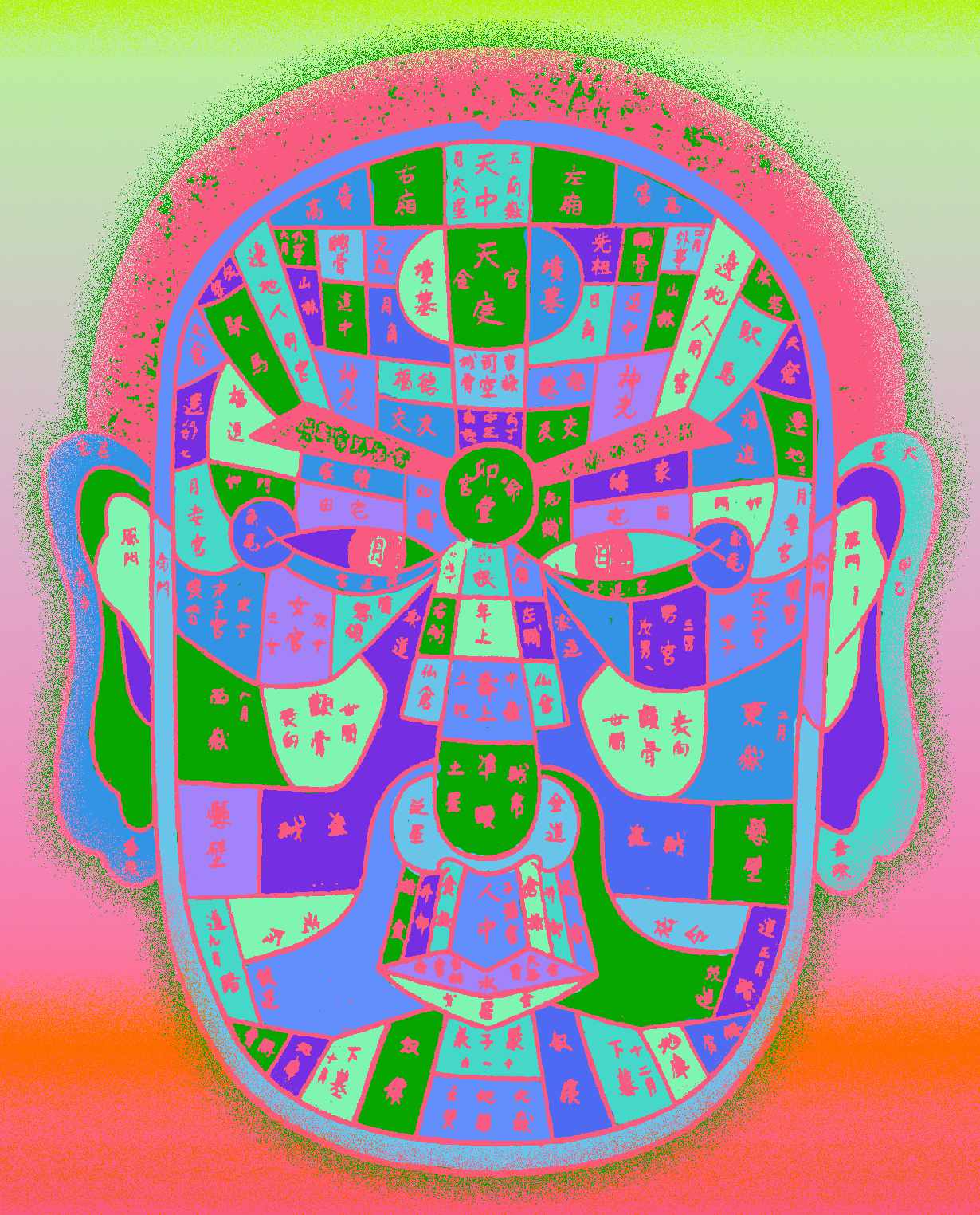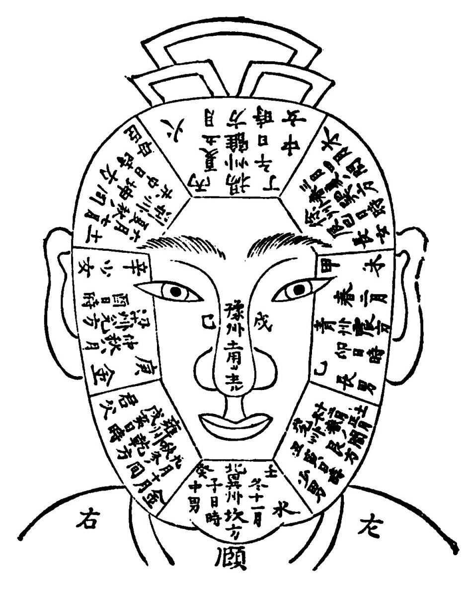 額には知恵、眉には徳、鼻には財運、頬には勇気──顔全体がまるで地図のように分割され、それぞれの部位が象徴的な意味を担っています。見る者は自然と、顔という平面を「読み解く」ことを求められます。つまり、人相図は“顔を地図化したグラフィック”とも言えます。