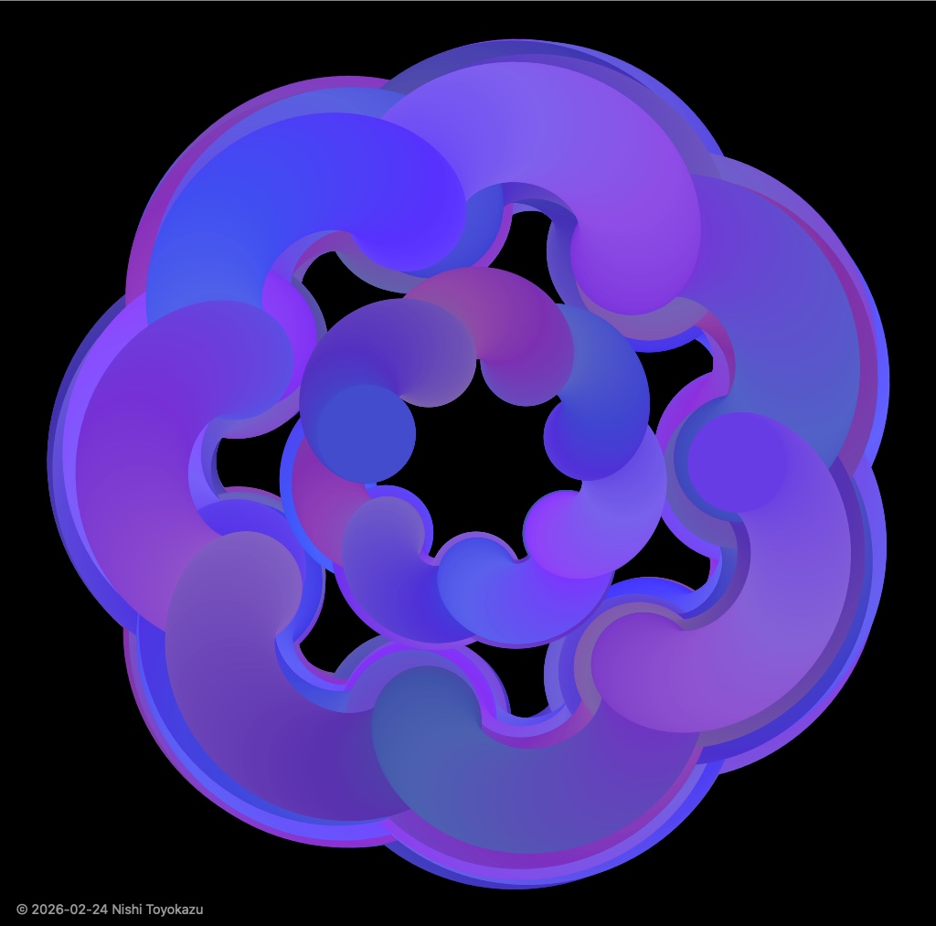 おまけに、生成した図形(リサジュー曲線)をそのままアプリアイコンにしたくなって、Icon Composerで仕上げました。Icon ComposerはAppleが用意している、マルチレイヤーのアイコン制作ツールで、Xcodeとも連携しやすい作りになっています。アイコンの場所をCodexに教えたら、自動的に実装してくれました。