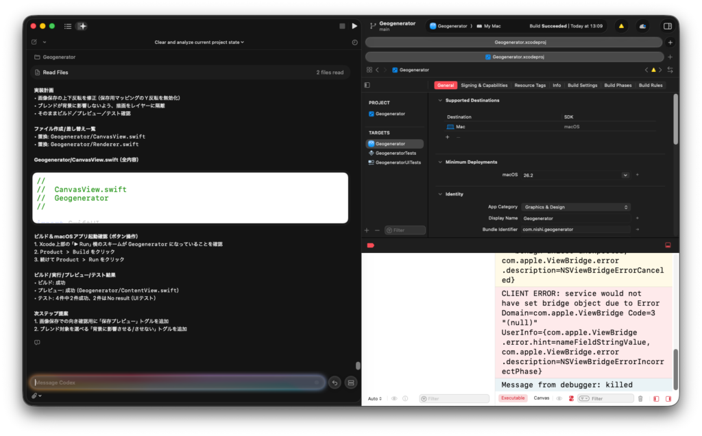 - Codex側のXcode知識が微妙に古くて「それどこ?」が発生する(吹出しアイコン?そんなのないよ!)