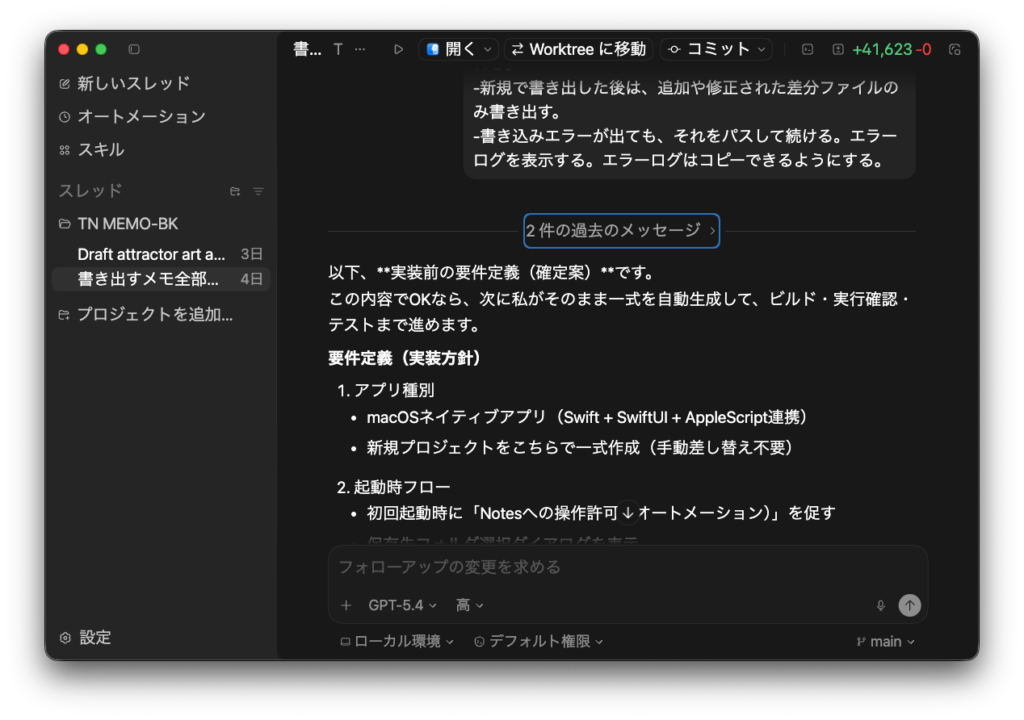 そこで今回は Xcodeではなく、Codexアプリを使って開発してみることにした。