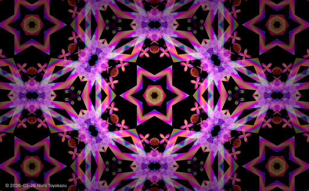 もちろん、万華鏡アプリ自体は世の中にたくさんあります。いまさらと言えばいまさらです。でも、美しいものは何度見てもいい。子どものころ、母の鏡台についていた虹色にきらめく小さな飾りや、本で見た王冠の宝石に心を奪われた記憶が、いまだにどこかに残っています。光りものに目がないあたり、昔から少々カラス寄りだったのかもしれません。